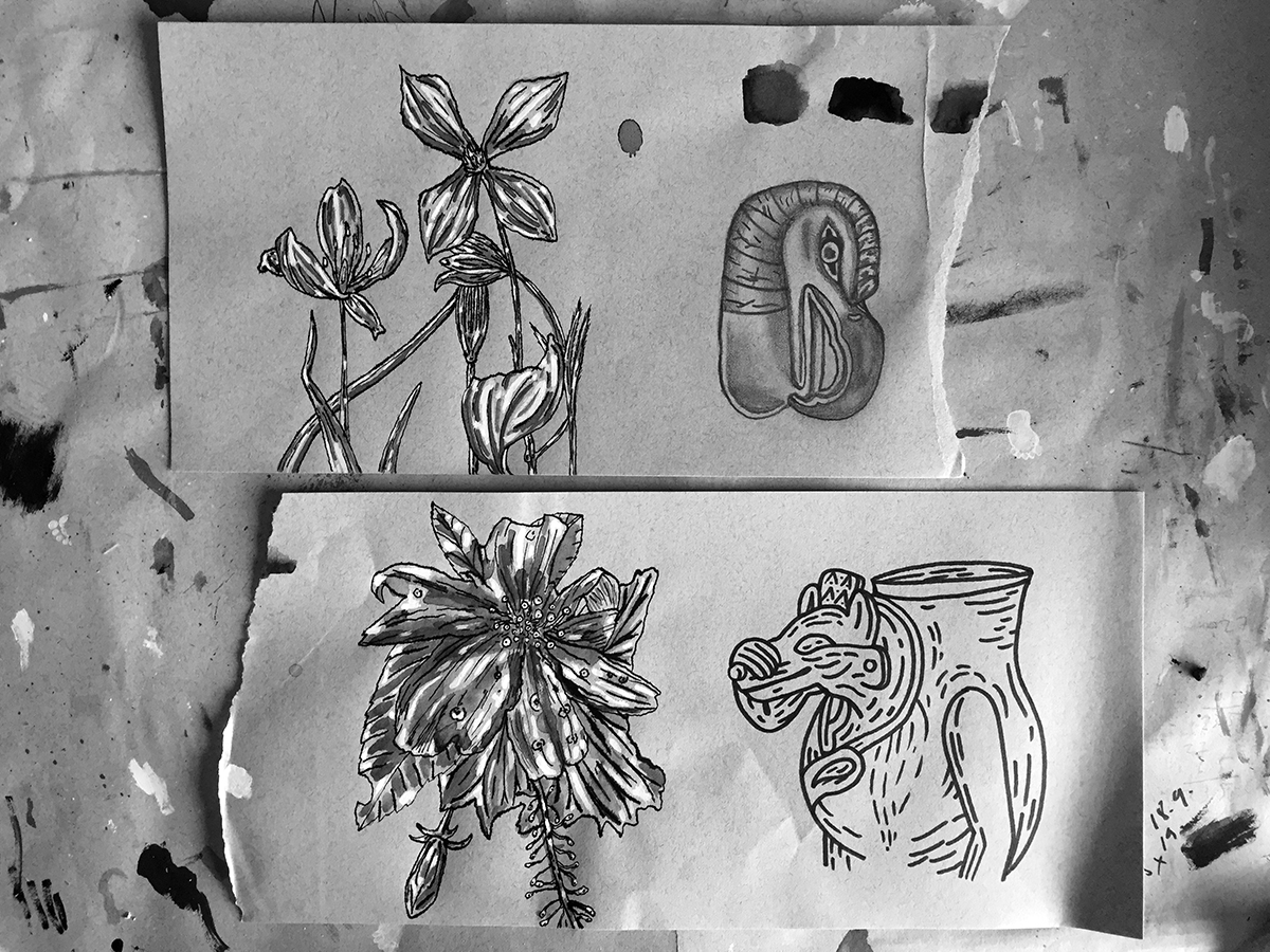 Grafito, tinta y colores de madera sobre papel de algodón, 39 x 47 cm, 2025