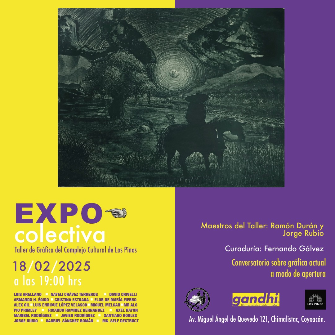 Cordial invitación para asistir a la inauguración de la exposición colectiva del Taller de Grabado del Complejo Cultural Los Pinos en Chapultepec. La cita es este 18 de febrero a las 19 horas en la librería Gandhi ubicada en Avenida Miguel Ángel de Quevedo 121, Chimalistac, Coyoacán, Ciudad de México.